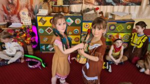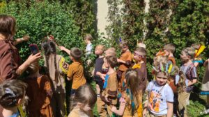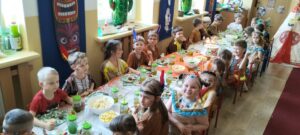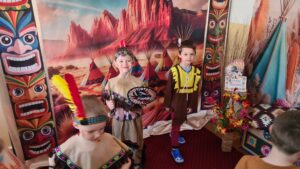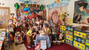Swoimi przeżyciami z Indiańskiego dnia, podzieliliśmy się już ze swoimi Czytelnikami w I części relacji. Teraz dołączamy tylko kilka foteczek z „Mysiej biesiady w Wiosce Indiańskiej”. Było pysznie i kolorowo, wesoło, rubasznie i na wielkim luziku. Kto miał ochotę – biesiadował popijając sokiem z kaktusa przepyszny torcik własnoręcznej produkcji Siostry Oli, inni buszowali w tipi, jeszcze inni – robili sobie pamiątkowe fotki na ściankach.
