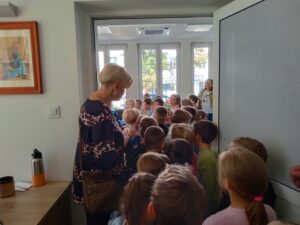 Na zakończenie spotkania dzieci wręczyły seniorom wyjątkowy prezent – własnoręcznie wykonaną książkę z ilustracjami przedstawiającymi sceny z bajki „Kopciuszek”. Ten gest został przyjęty z ogromnym wzruszeniem i radością. W podziękowaniu za wizytę, seniorzy przygotowali dla małych gości słodki poczęstunek w formie lizaków.