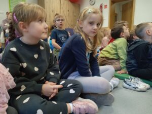 Po zakończonym spektaklu przyszedł czas na wspólną zabawę – tańce integracyjne! Zarówno dzieci, jak i seniorzy z wielką chęcią włączyli się do tańca, co stworzyło niezwykle radosną i ciepłą atmosferę. Wspólna zabawa pomogła przełamać bariery międzypokoleniowe i pozwoliła nawiązać serdeczne relacje.
