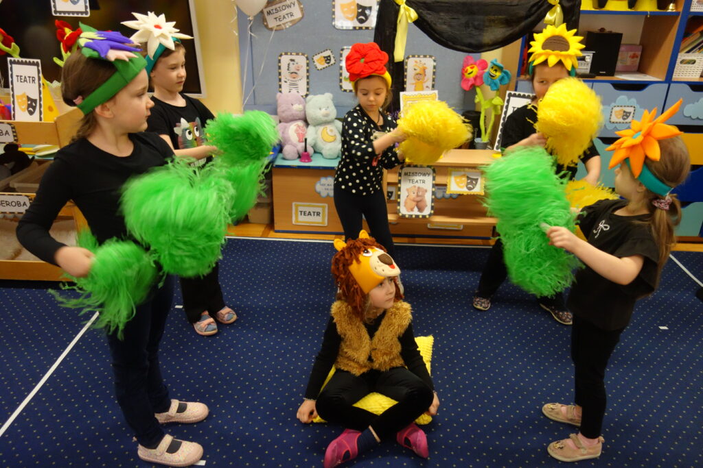 Tak przygotowani kandydaci mogli w końcu sprostać ważnemu zadaniu, jakim było wystawienie sztuki o małym lwie Leonku, który zgubił mamę. Aktorzy zostali więc obsadzeni w rolach głównych i drugoplanowych, z garderoby zostały dostarczone kostiumy i rekwizyty, odbyła się próba spektaklu. Sztuka, obfitująca w „moc emocji”, ale kończąca się happy endem, okazała się wielkim sukcesem Misiaków. Pani reżyser nie posiadała się ze szczęścia i dumy, że Misiowy Teatr zyskał takich wspaniałych aktorów. Wszyscy artyści bez wyjątku otrzymali angaże i honoraria wypłacone „w ciasteczkach”. Plus mały bonusik: wyjątkową możliwość zobaczenia na scenie dyrektorek castingu i pani reżyser w inscenizacji wiersza J. Brzechwy „Żuk”. Zgodnie z założeniem, okazało się, że tego dnia emocji była cała moc. Kto wie, może przedszkolne zabawy okażą się tym ważkim momentem, który zadecyduje, że kiedyś ujrzymy jakiegoś Troskliwego Misia na scenie prawdziwego teatru. Takie rzeczy się zdarzają!