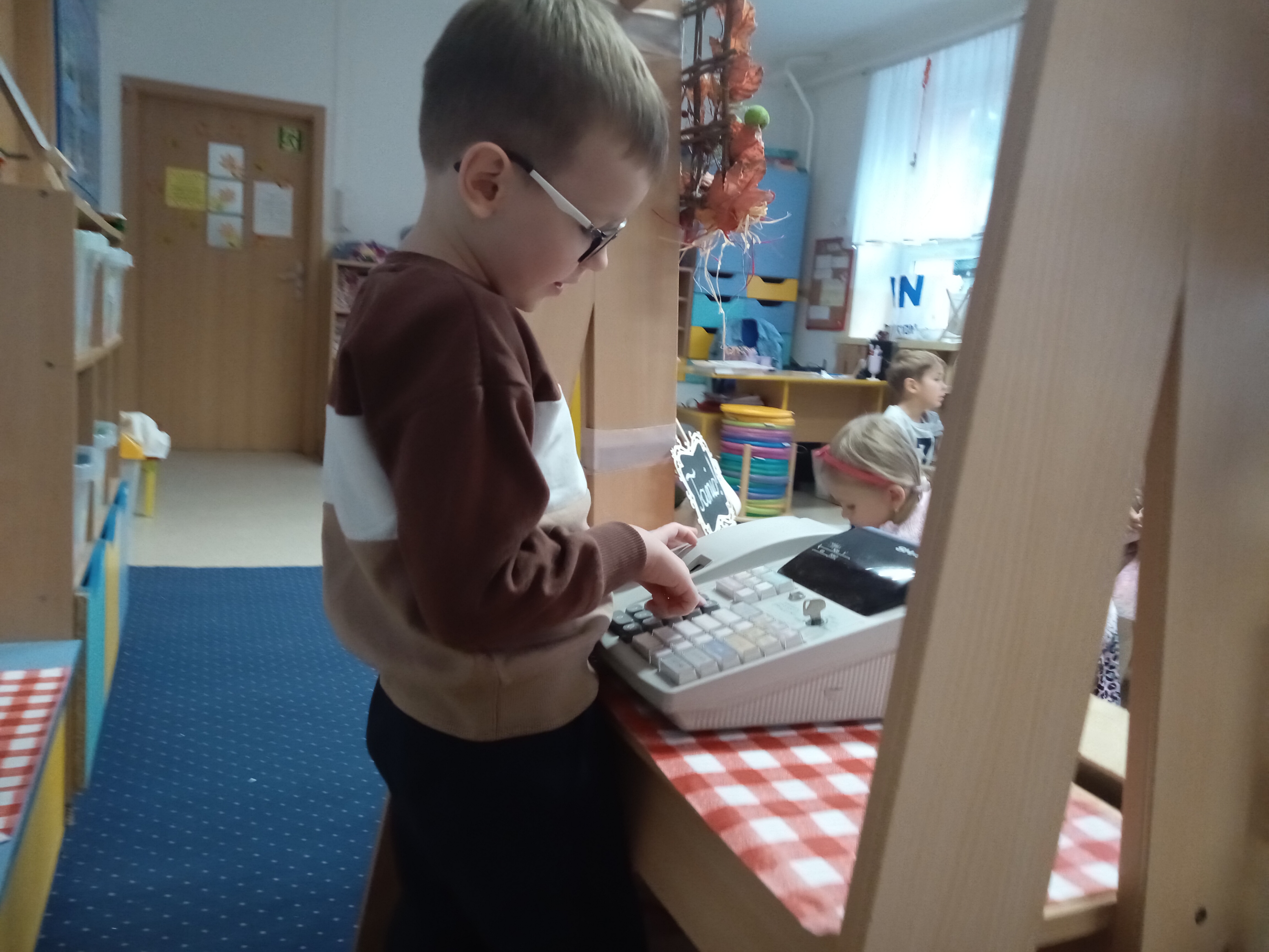 Podczas zabawy dzieci w naturalny sposób rozwijały umiejętności matematyczne, językowe i społeczne. Uczyły się, jak prowadzić rozmowę, czekać na swoją kolej, a także jak współpracować w grupie. Nie zabrakło również śmiechu i radości – każdy chciał spróbować obu ról!